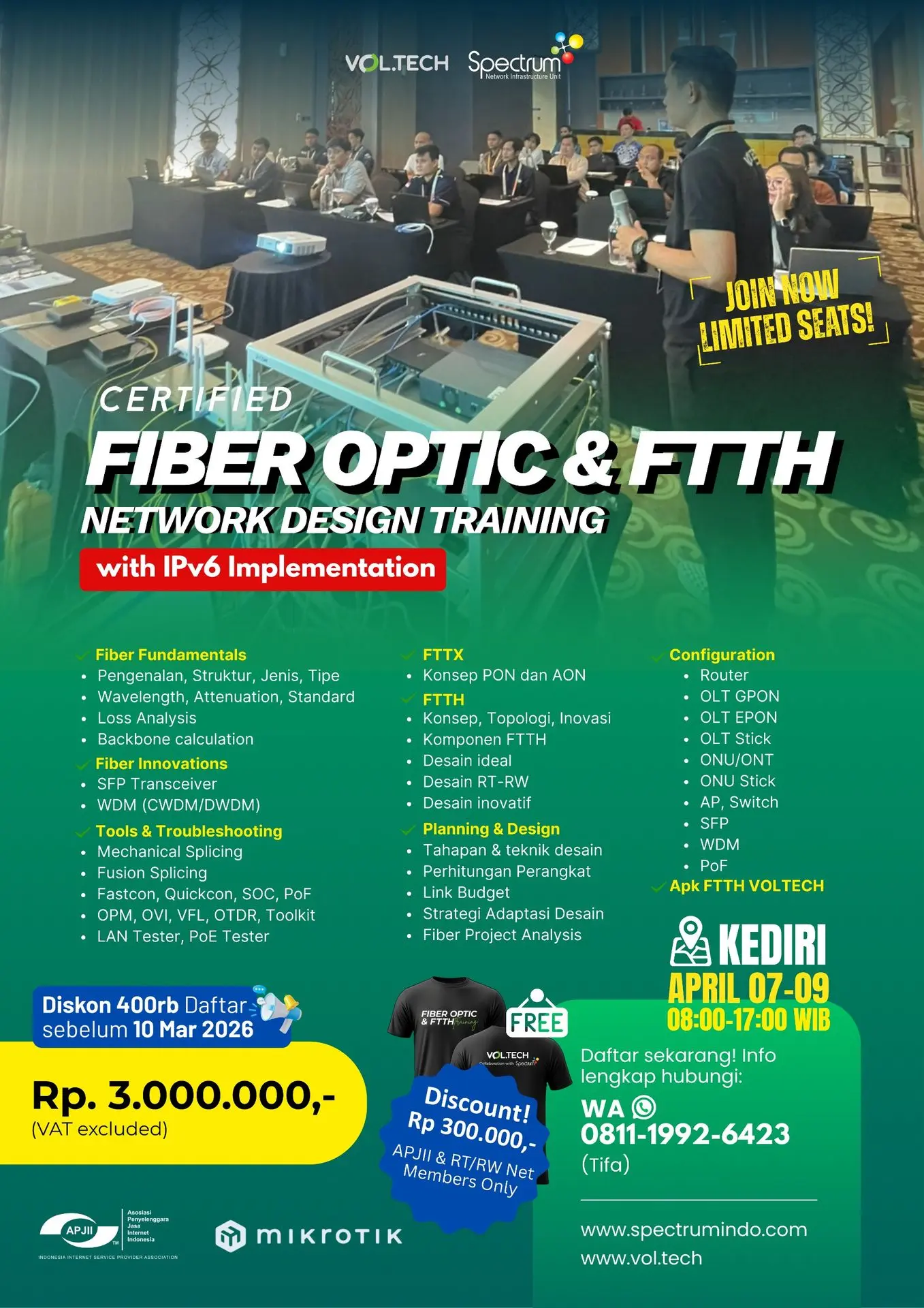 - Materi pelatihan yang komprehensif dan relevan dengan dunia industri FTTH
