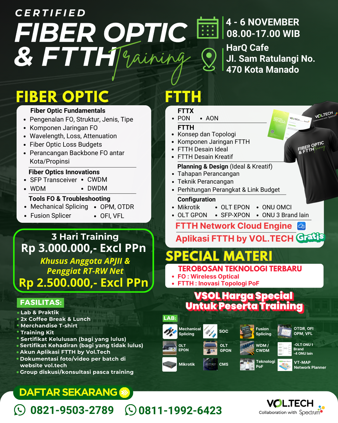 - Klik Daftar Sekarang pada Flyer "Certified Fiber Optic & FTTH Training" di website Vol.tech